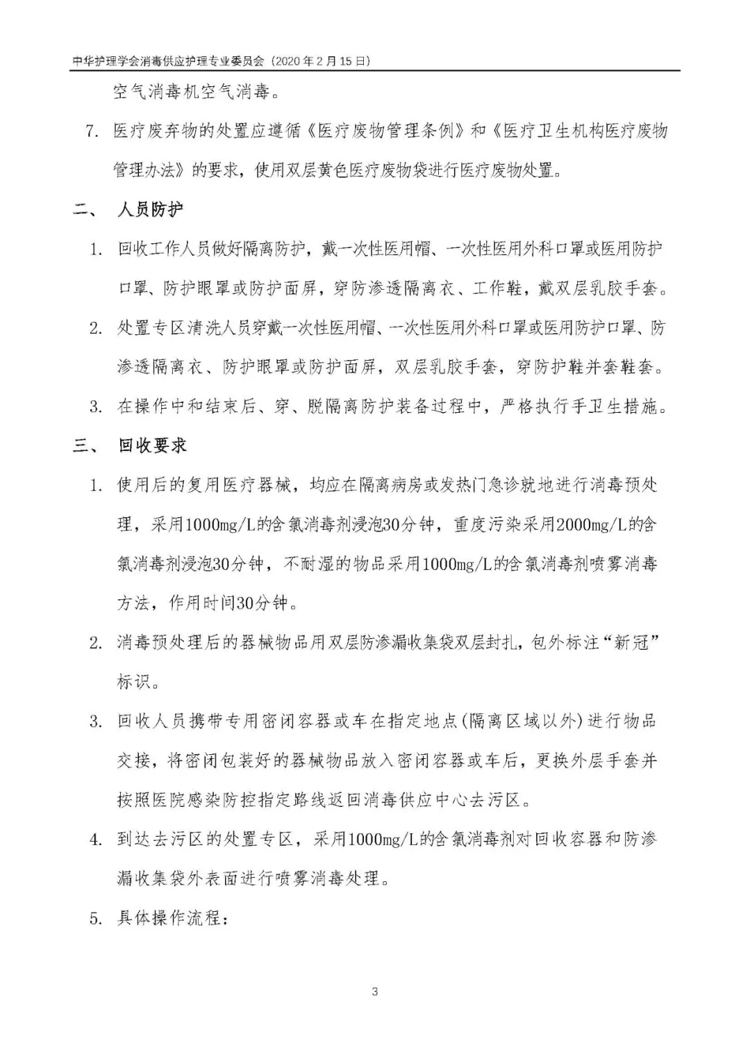 新型冠狀病毒肺炎疑似或確診患者復(fù)用醫(yī)療器械器具和物品處置流程指引建議